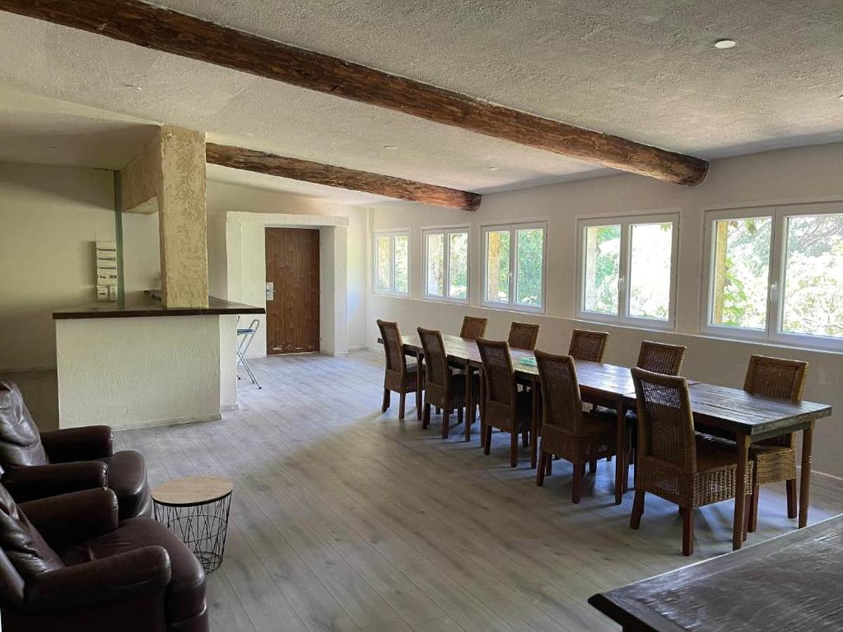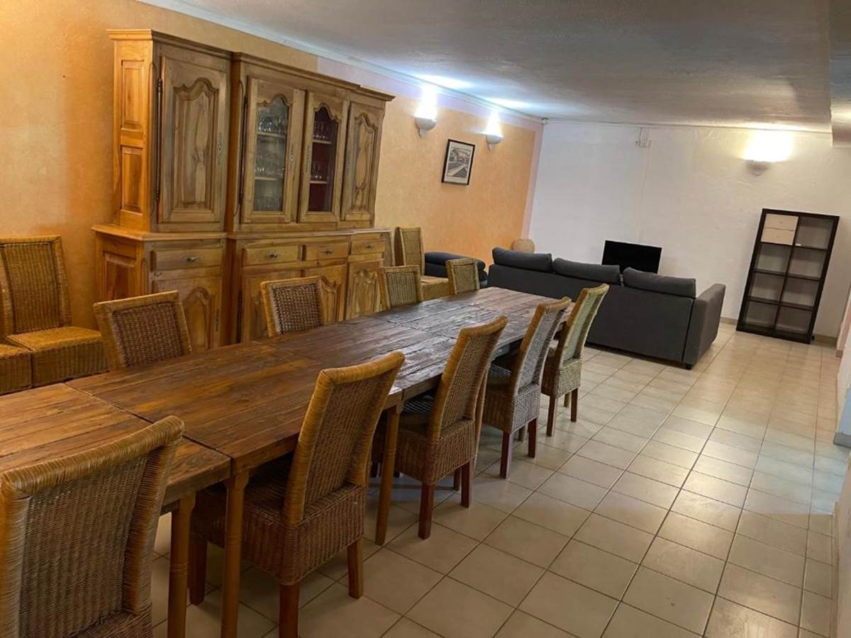 Spacieux appartement T5 avec une grande terrasse couverte type véranda (60m²), 1 grand salon climatisé (40m²) avec 1 canapé-lit (2 couchages), 1 cuisine équipée, trois chambres climatisées (2 chambres doubles, 1 chambre triple), 2 salles de bains/wc, grande capacité d'accueil dans la terrasse (environ 50 personnes)